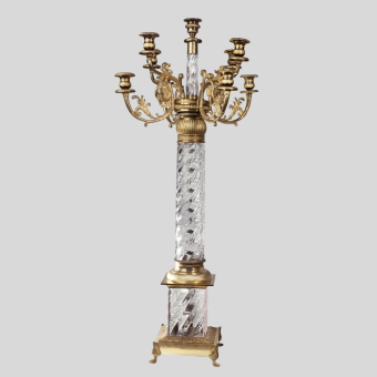 Фигурка Амура, придерживающего ветви со свечниками, трактована в несколько наивной, простодушной манере, характерной для петербургских и московских мастерских того времени. В то же время необходимо подчеркнуть тщательность исполнения золочёных элементов бра, выполненных на высоком художественном и техническом уровне.Яркий контраст плотного золочения и темно-патинированных фигур проявлялся особенной эффектно при горящих свечах, когда на бронзовой поверхности возникала причудливая игра света и тени.Подобные предметы, отмеченные печатью не столько изысканного творчества, сколько высокого ремесленного усердия предавали характерный колорит интерьерам петербургских дворцов и особняков этого времени.