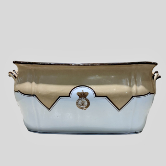 Сервиз на сто кувертов, созданный в 1823-1824 годах для Петергофского дворца, насчитывал 1500 предметов. Свое название «Бабигонский» сервиз получил в середине XIX века, когда его часть была передана для использования в новый дворец Бельведер на Бабигонском холме, близ Петергофа. Такое название - Бабигонский сервиз - было зафиксировано в реестре сервизных кладовых.
