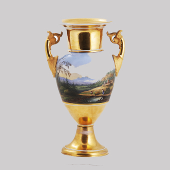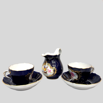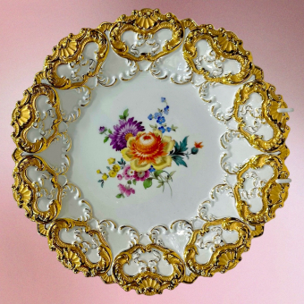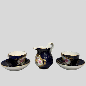 Фарфор, надглазурная роспись, позолота, цировка.