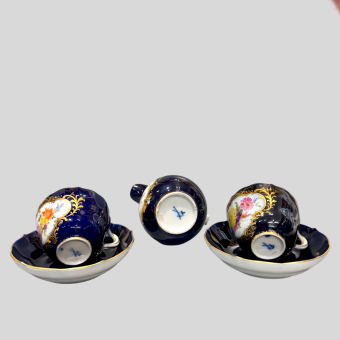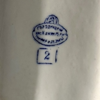 Представленные предметы из вышеупомянутого сервиза имеют различную маркировку, на некоторых предметах она отсутствует. Исполненный в самом конце правления императора Александра I, основной состав сервиза пополнялся вплоть до начала XX столетия. Значительная часть предметов имеет подглазурную марку "HI", геридон и вазы с отсутствующей маркировкой предположительно выполнены во время правления Александра II, одна ваза на высокой ножке маркирована вензелем "АIII", салатники, и чашки в большинстве своем имеют марку "HII".