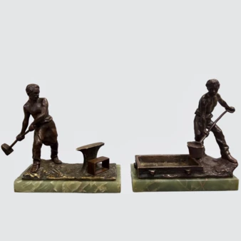 Парные кабинетные настольные скульптуры «Кузнец» и «Сталевар», Россия (?), конец XIX – начало XX века.