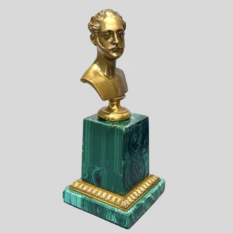 Бронза, литье, основание - малахит, мозаика.