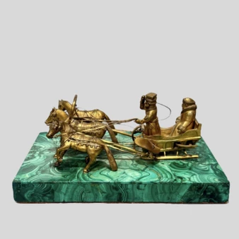 Бронза, литье, позолота, основание - малахит, мозаика.
