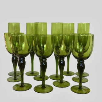 Набор винтажных бокалов для шампанского и вина на 6 персон, Италия, 1970-е годы.