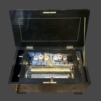 Музыкальная шкатулка, валиковая с 6-ю колокольчиками, Швейцария, XIX век.