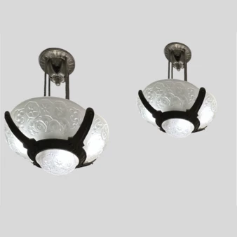 Люстры парные в стиле ар-деко, Франция, мастерская "Petitot" и фирма "Muller Freres", 1930-е годы.