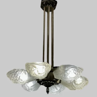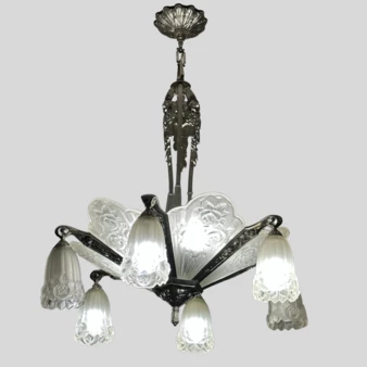 Люстра в стиле ар-деко, Франция, фирма "Francis Hubens" и фабрика "Verrerie D’Art Degue", 1920-е годы.