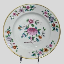 Глубокая тарелка с цветочно-растительным декором в стиле шинуазри, Россия, Санкт-Петербург, Императорский фарфоровый завод, период правления Николая I (1825-1855-е годы).