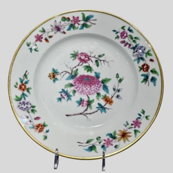 Плоская тарелка с цветочно-растительным декором в стиле шинуазри, Россия, Санкт-Петербург, Императорский фарфоровый завод, период правления Николая I (1825-1855-е годы).