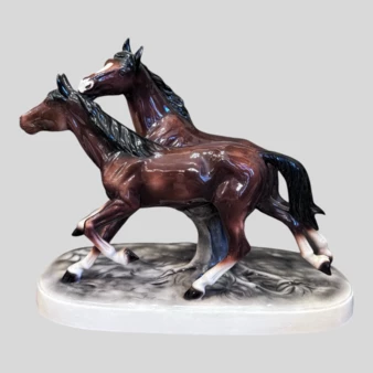 Скульптурная композиция «Бегущие кони», фарфоровая мануфактура "Hertwig & Co" ("Хертвиг"), Германия, 1941-1958-е годы.