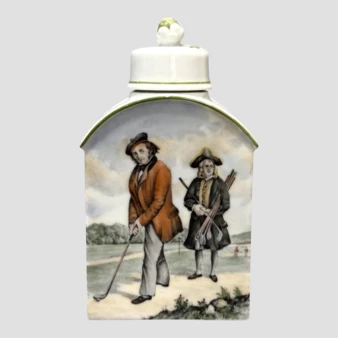 Чайница со сценой игры в гольф, Германия, фарфоровая мануфактура "Фюрстенберг" ("Porzellanmanufaktur Furstenberg"), 1950-1960-е годы.