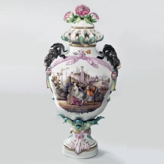 Декоративная ваза-ароматница со съемной ажурной крышкой, Германия, Берлин, Берлинская Королевская мануфактура ("Die Königliche Porzellan-Manufaktur Berlin"), середина XIX века.