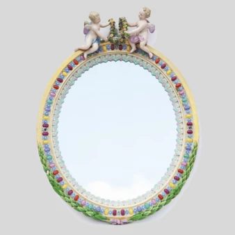 Зеркало настенное с фигурками амуров, Германия, Мейсенская Государственная фарфоровая мануфактура ("Meissener Porzellan"), XIX век.
