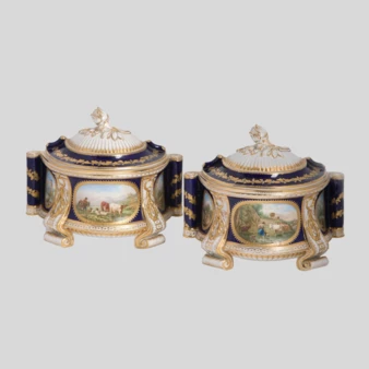 Настольные украшения с пасторальными пейзажами (шкатулки), Франция, Париж, XIX век.