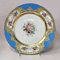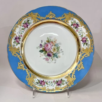 Фарфор, надглазурная монохромная роспись, роспись золотом, позолота, голубое крытье.