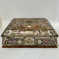 Инкрустация: дерево (палисандр), латунь, олово, кость, черепаха, гравировка.