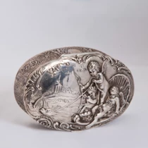 Белый металл, литье, чеканка, гравировка, выпиловка.