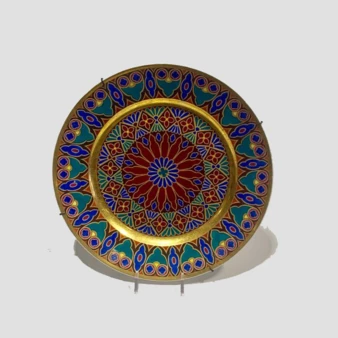 Тарелка десертная с полихромной росписью по мотивам готических витражей.