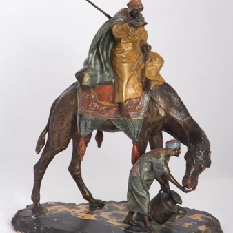 Бронза, литье, чеканка, полихромная роспись, монтировка, подставка - мрамор.