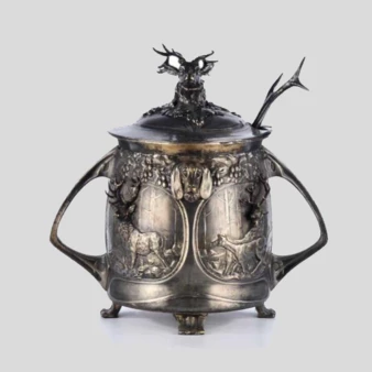Бронза, литье, чеканка, серебрение, вставка-стекло