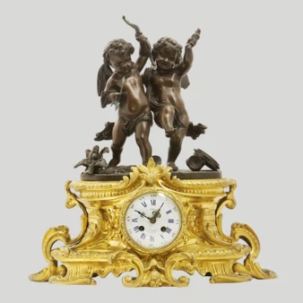 Каминные часы «Танцующие Амур и Психея», Франция, Париж, бронзолитейная мастерская «Л. Маршан» («L. Marchand»), 1850-1860-е годы.
