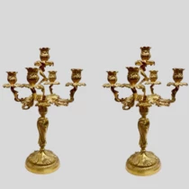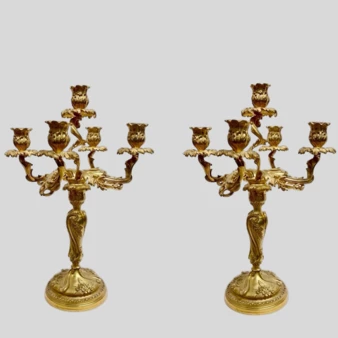 Роскошные парные канделябры в стиле рококо на 5 свечей, Западная Европа, середина XIX века.