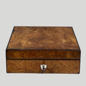 Дерево, кап ореха, перламутр, металл, штамп, золочение, сталь, стекло, ткань - шелк и бархат.