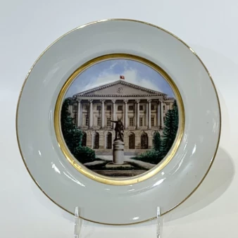 Парные тарелки с видами: «Кремль» и «Смольный», Россия, ЛФЗ, 1950-е годы.