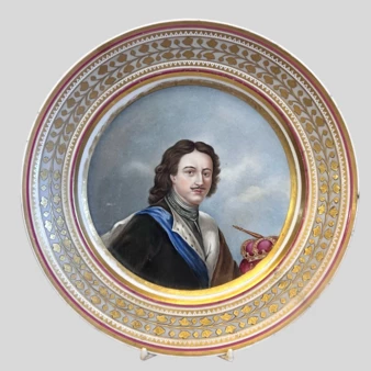 Тарелка с портретом Петра Великого, Россия, Императорский фарфоровый завод, 1825-1855-е гг. (Период правления Николая I).