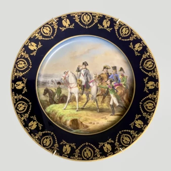 Комплект из 6-ти тарелок с батальными сценами, Франция, Лимож, фирма "У. Герен и К" ("W. Guérin & Cie"), 1910-е годы.
