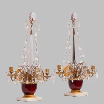 Парные жирандоли на две свечи с рубиновым стеклом, Россия, Санкт- Петербург, конец XVIII века.