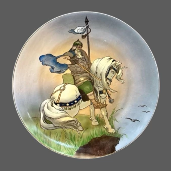 Декоративное блюдо "Богатырь", фабрика "М.С. Кузнецова", 1915 год.