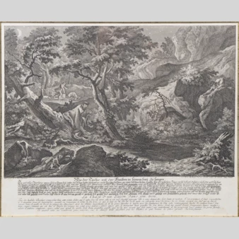 Гравюра «Охота на барсука», Германия, XVIII век.