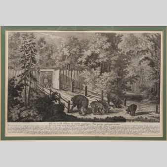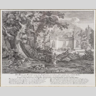 Гравюра «Загон для оленей во французском стиле», Германия, XVIII век.
