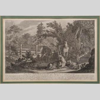 Гравюра «Косули и олени», Германия, XVIII век