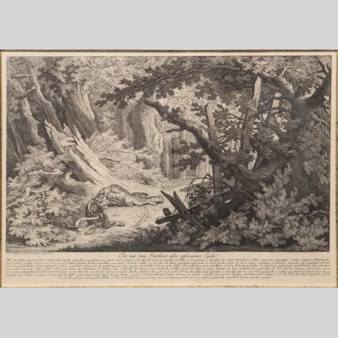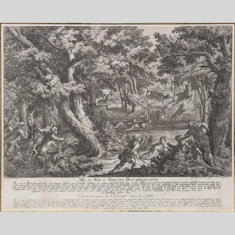 Гравюра «Охота на оленей» («Охота на серн»), Германия, XVIII век.