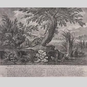 Гравюра «Охота на бобров», Германия, XVIII век.