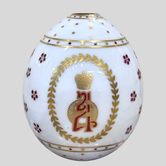 Пасхальное яйцо с вензелем императрицы Александры Фёдоровны, Россия, Санкт-Петербург, Императорский фарфоровый завод, 1914-1917 годы.