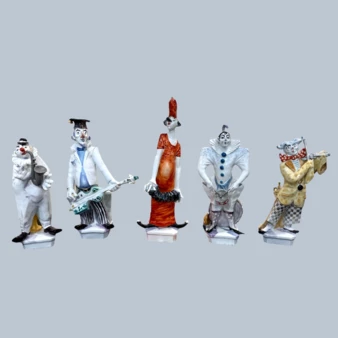 Полный комплект веселых клоунов - музыкантов, Германия, Мейсенская Государственная фарфоровая мануфактура ("Meissener Porzellan"), XXI век, Питер Штранг.