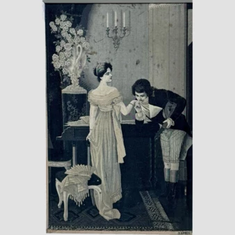 Гобелен машинный «Галантная сцена в гостинной» Франция, начало XX века.