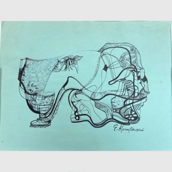 СССР, Кропивницкий Евгений Леонидович, "Сюрреалистическая композиция с головой и чашей", 1970-е годы.