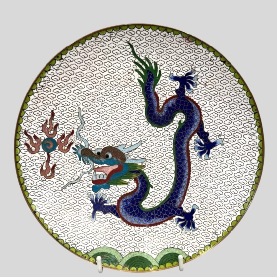 Тарелка с разноцветными цветами в технике клуазоне, Китай, XX век.