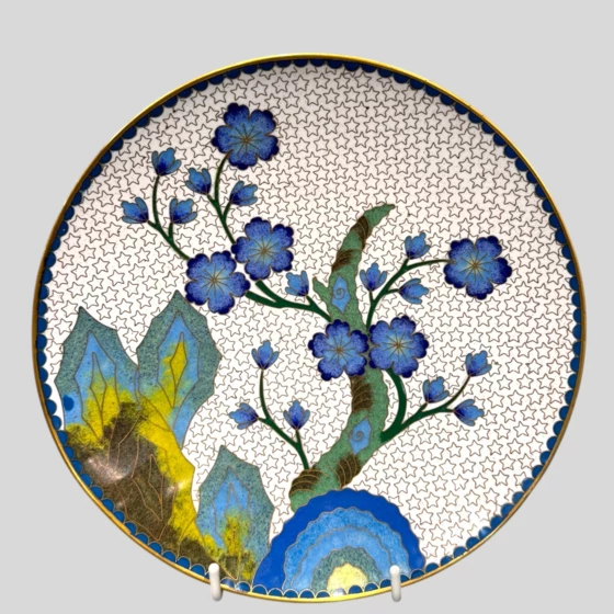 Тарелка с голубыми цветами в технике клуазоне, Китай, XX век.