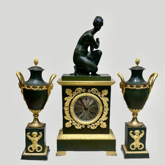 Каминные часы «Афродита» с парными вазами - подсвечниками (трансформерами), Франция, XIX век.