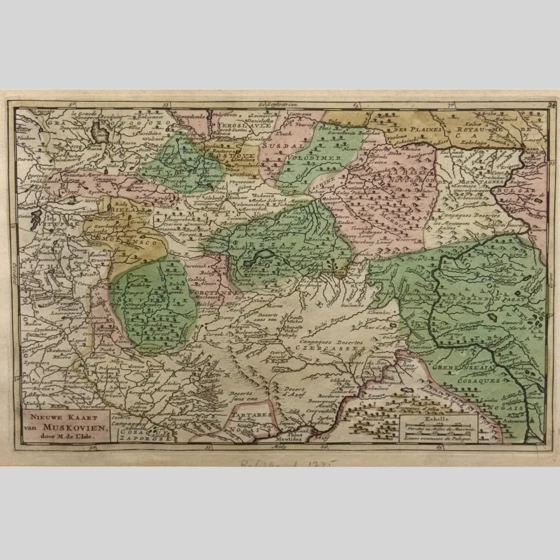 Гравюра "Новая карта Московии", Нидерланды, Амстердам, 1742 год.