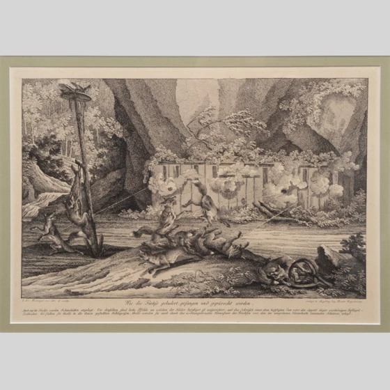 Гравюра «Загон лисиц», Германия, XVIII век