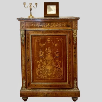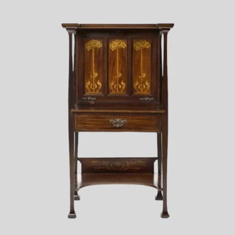 Секретер выполнен из красного дерева, центральная часть украшена тончайшим маркетри с цветочным мотивом.