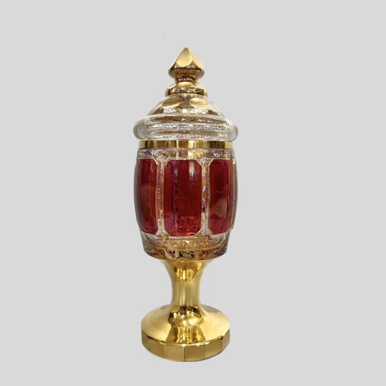 Хрусталь, рубиновый нацвет, позолота.