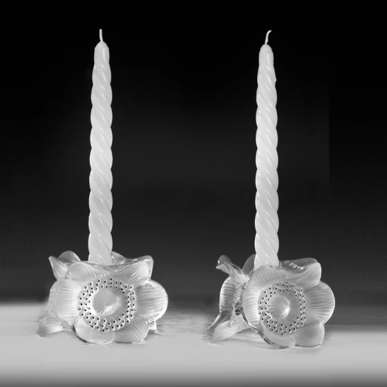 Парные подсвечники «Анемоны» («Anemones»), Франция, фирма "Лалик" ("Lalique"), XX век, Мари-Клод Лалик.