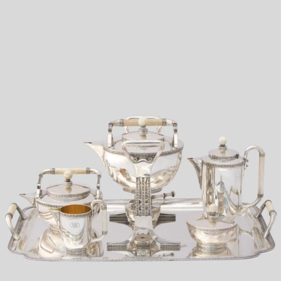 Чайно-кофейный сервиз из 6-ти предметов, Германия, Бремен, фирма «Кох и Бергфельд» ("Koch&Bergfeld"), начало XX века.